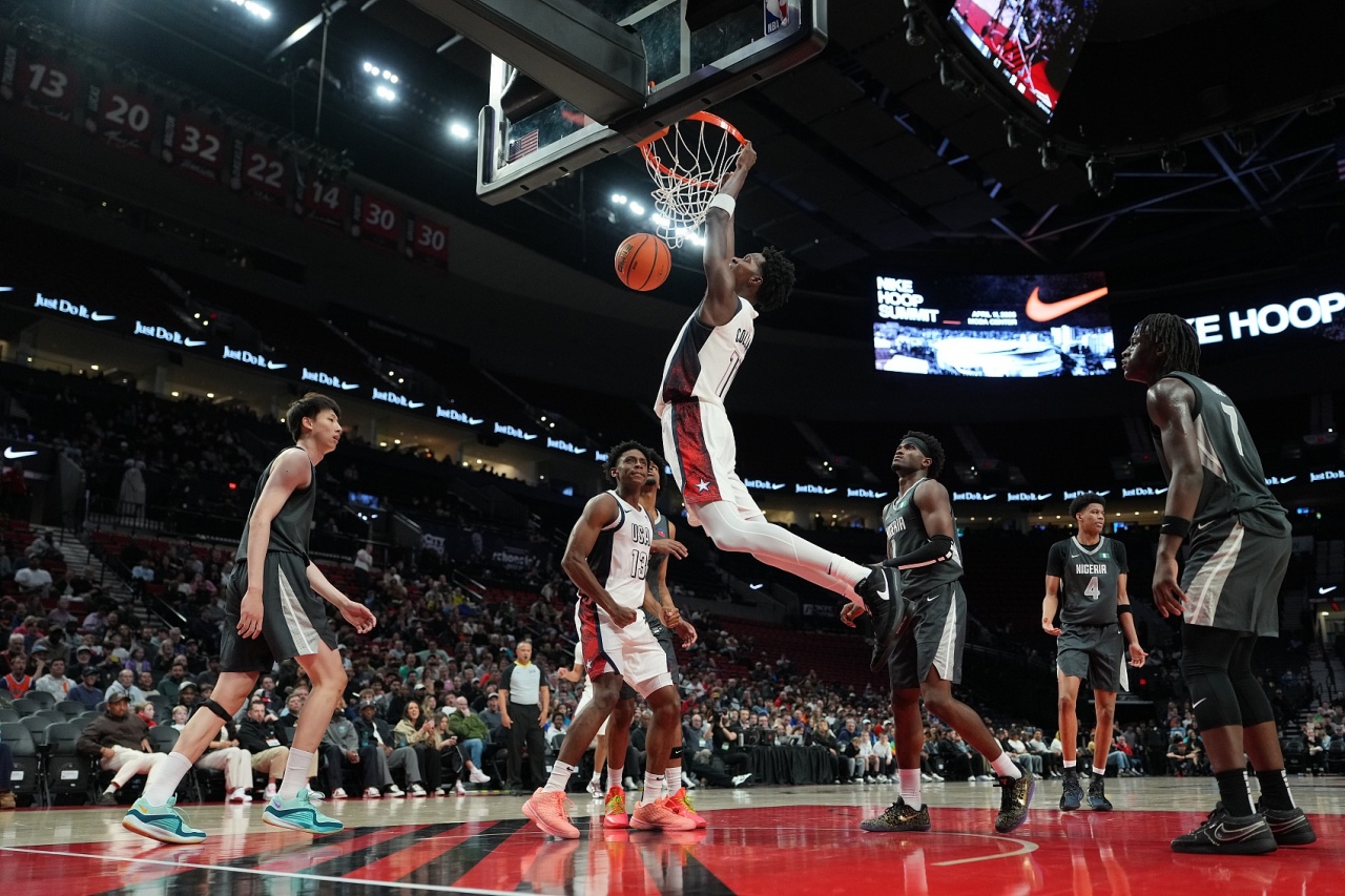 4月12日讯 耐克篮球峰会今日在在美国俄勒冈州波特兰的摩达中心举行开打,美国队对阵世界队。中国球员郇斯楠入选世界队并首发出战。