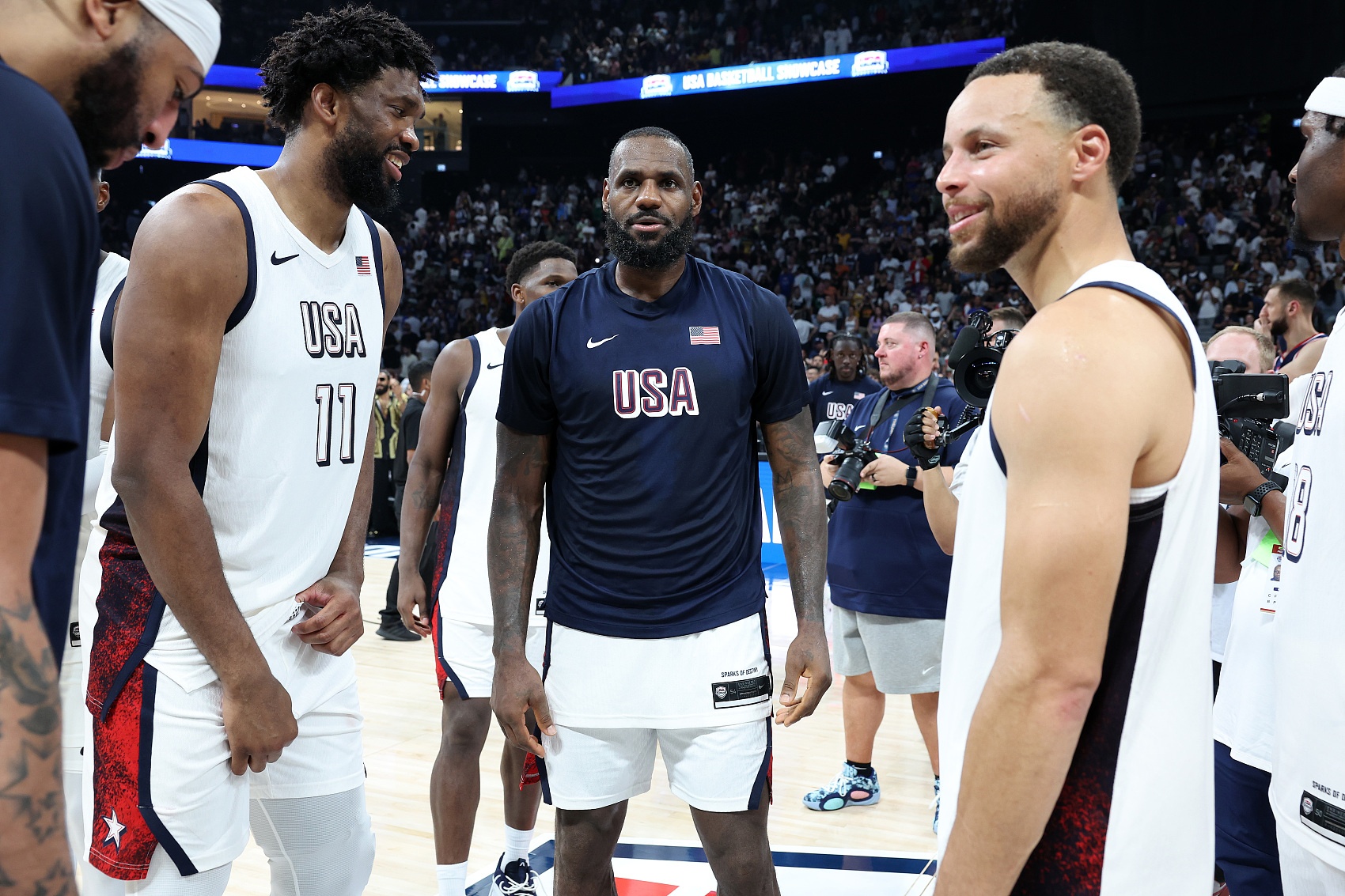 美国队:詹姆斯23分5篮板4助攻,库里12分3篮板,霍勒迪8分2篮板2助攻,恩比德14分5篮板2助攻,布克5分,戴维斯15分5篮板,爱德华兹11分,塔图姆9分,阿德巴约4分。