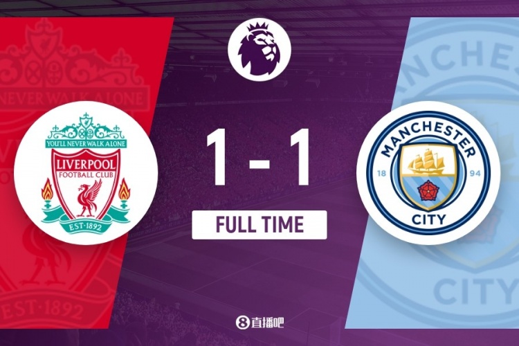 下半场补时8分钟。最终全场比赛结束,利物浦1-1曼城。
