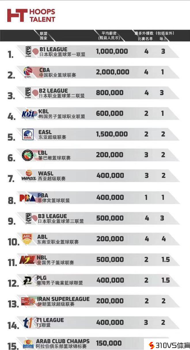 值得一提的是,虽然CBA联赛在排名上不如日本B联赛,但在薪酬这一块却是遥遥抢先,平均薪资为200万一年,比日本B联赛的100万一年多一倍,这也表现出CBA联赛的高薪待遇。