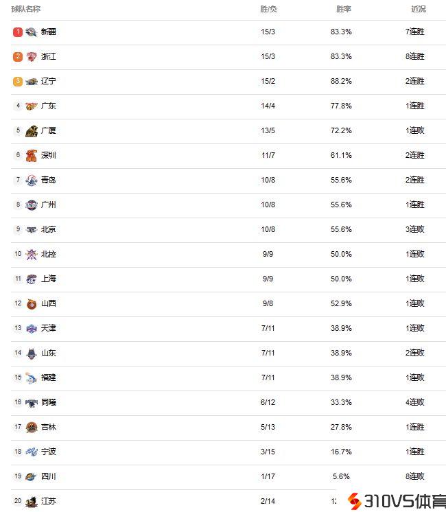 稠州绝杀山东,辽宁升第三,青岛进前八,CBA最新排位