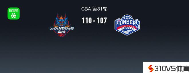 第四节山东陈培东拿下10分,天津时德帅拿下5分,最终山东110-107打败天津