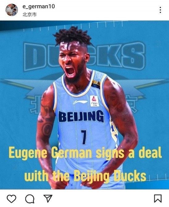 💥前福建男篮外援尤金-杰曼更新社媒 宣布自己签约北京男篮