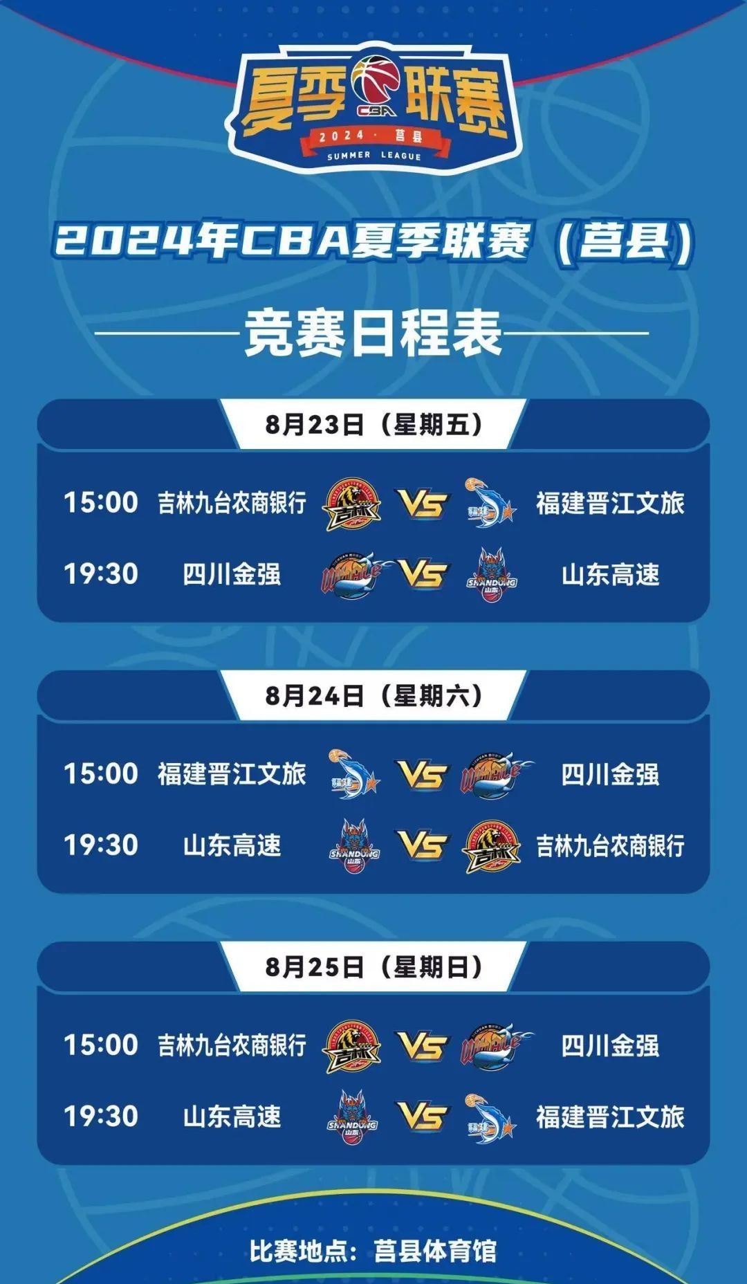 🌟CBA夏季联赛莒县站:吉林、福建、四川、山东参赛 首战8月23日15点开打