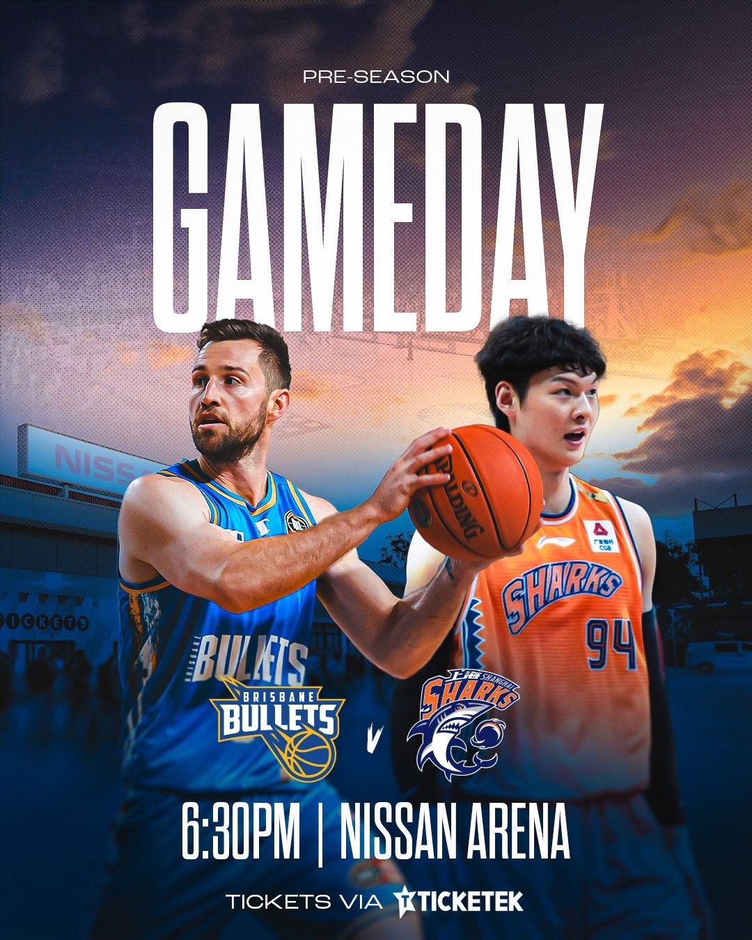 今日进行的澳篮季前赛,布里斯班子弹对阵上海男篮。