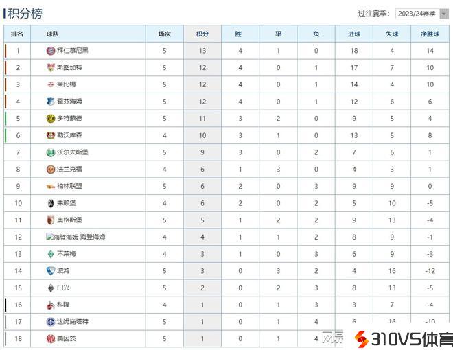 德甲最新积分榜:拜仁主场7球大胜登顶,多特力克狼堡照旧不败!