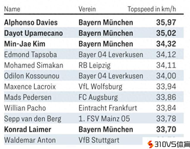 踢球者发布德甲速度最快后卫排行:前三均为拜仁球员,戴维斯榜首