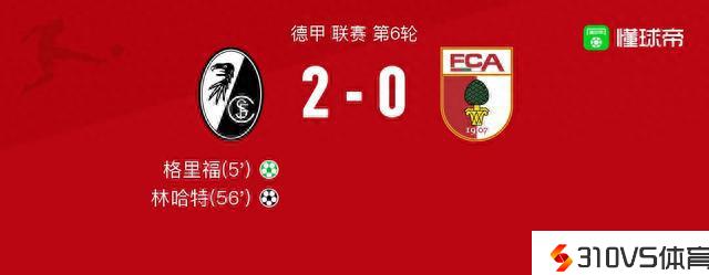 弗赖堡2-0奥格斯堡,林哈特破门,格里福建功