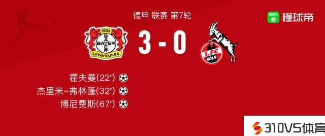 勒沃库森vs科隆球员评分:霍夫曼9.6分,古斯塔沃-普埃尔塔5.8分