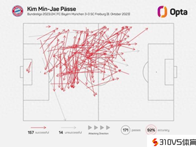 金玟哉本场传球171次,创德甲自2019年以来单场传球次数纪录