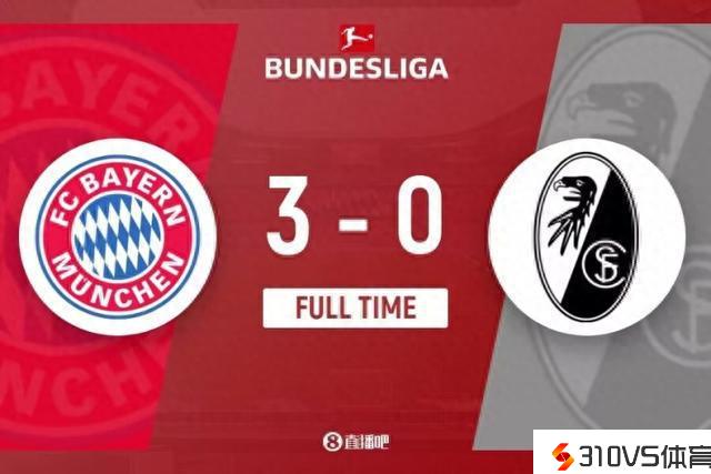 下半场伤停补时4分钟,全场完毕,最终拜仁3-0弗赖堡。