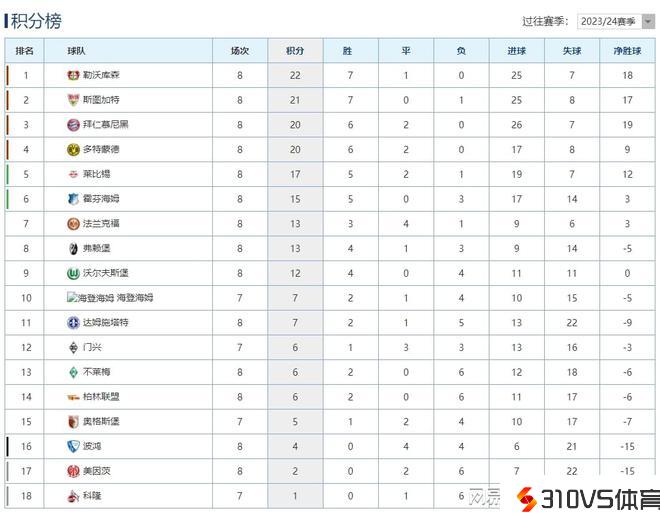 德甲最新积分榜:勒沃库森连胜高居榜首,拜客场赢球仍居第3!