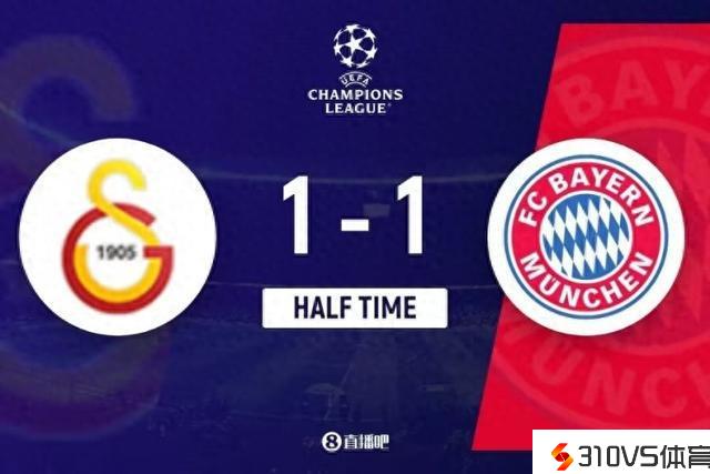 上半场竞赛完毕,拜仁慕尼黑1-1加拉塔萨雷。