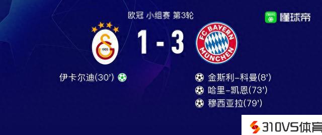 拜仁慕尼黑vs加拉塔萨雷球员评分:伊卡尔迪7.9分,泰特6.1分