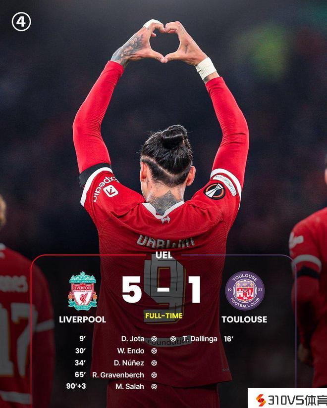 E组,利物浦主场5-1轻取图卢兹,3连胜居首。远藤航打入首球,若塔、努涅斯先后破门,萨拉赫替补建功。