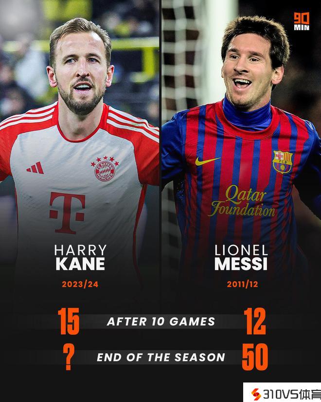 应战纪录?凯恩10轮德甲15球,高于当年联赛50球梅西的前10轮12球