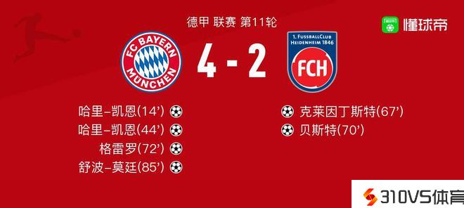 拜仁慕尼黑vs海登海姆全场数据:射门数19-8,射正数8-2