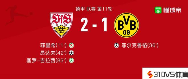多特蒙德vs斯图加特球员评分:格雷戈-科贝尔8.6分,菲里希6.0分