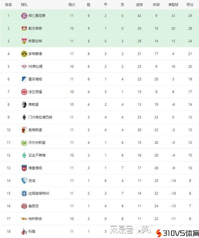 德甲最新积分榜:凯恩2球拜仁赢球登顶,多特蒙德客负遭2连败!