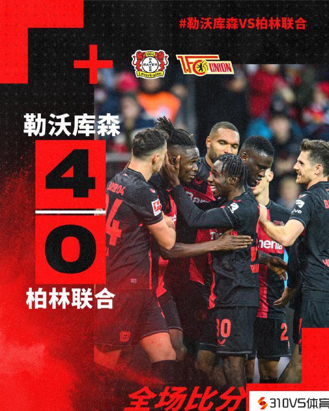 此役大胜后,勒沃库森联赛豪取7连胜,各项赛事则豪取12连胜。41岁的西班牙少帅哈维-阿隆索率领球队不时刷新队史纪录。新赛季开赛至今,勒沃库森17场不败,打进59球、丢14球、7场零封。勒沃库森三条阵线连战连捷。德甲只在客场2-2战平拜仁,欧联4战全胜小组第1、德甲2分领跑、德国杯晋级16强。