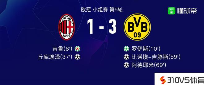 AC米兰vs多特蒙德球员评分:胡梅尔斯7.8分,迈尼昂6.1分