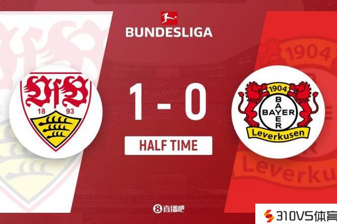 伤停补时4分钟。半场战罢,勒沃库森0-1斯图加特。