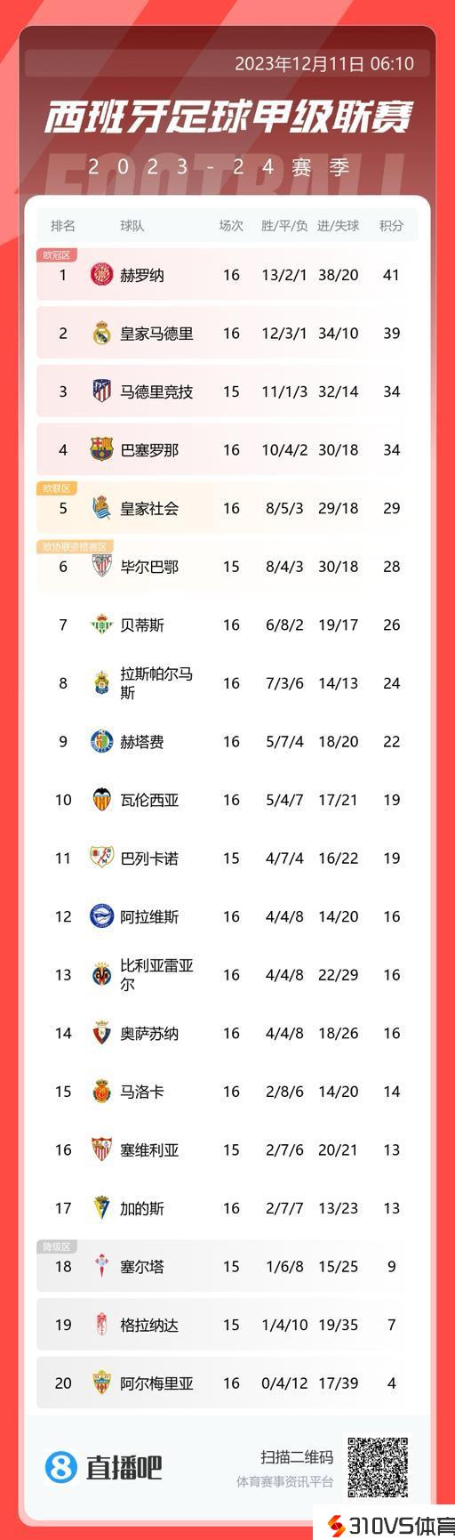 笑傲德比登顶西甲!赫罗纳是本赛季五大联赛首支积分超40的球队