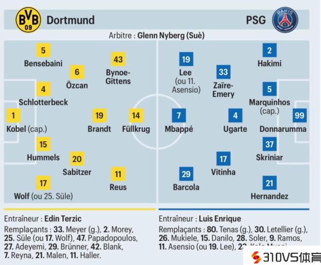 多特vs巴黎首发预测:罗伊斯、吉滕斯出战PK姆巴佩、李刚仁