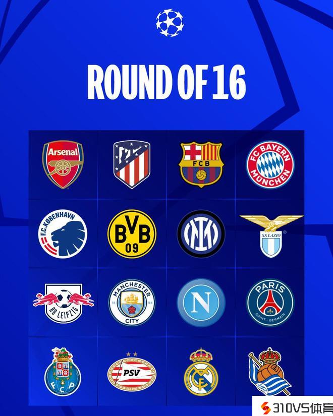 欧冠16强球队构成:西甲4队第1,意甲德甲3队,英超仅占2席