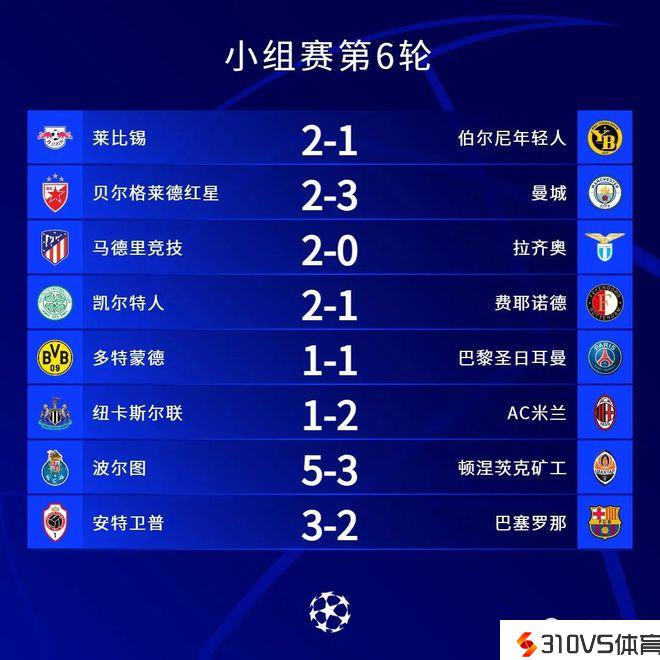其中最后两个16强名额争夺中,巴黎圣日耳曼惊险从死亡之组包围成功,米兰和纽卡遭淘汰。波尔图为葡超守住脸面,小组第二出线。