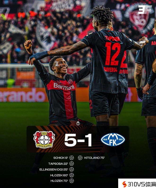 第70分钟,赫洛热克强行助攻姆班巴折射入网,勒沃库森5-0遥遥抢先。