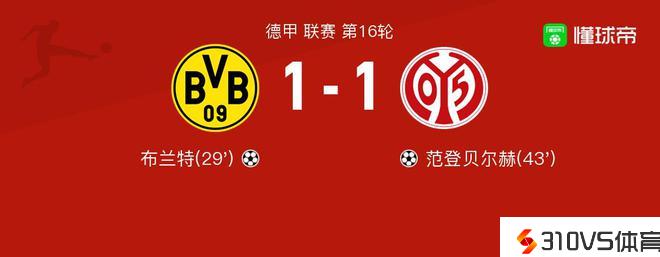 多特蒙德vs美因茨球员评分:布兰特8.4分,艾曼-巴尔科克5.5分