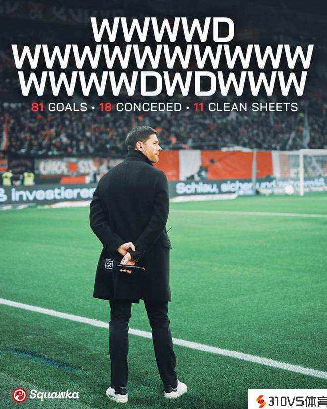 勒沃库森赛季前25场狂轰81球 仅丢18球&完成11次零封