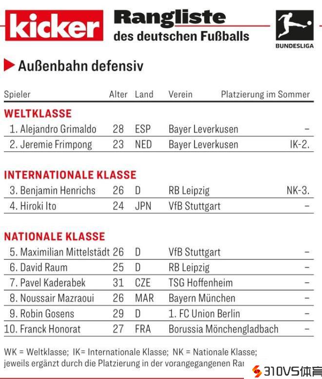 世界级!德甲边卫评级:药厂双边卫世界级,马兹拉维第八