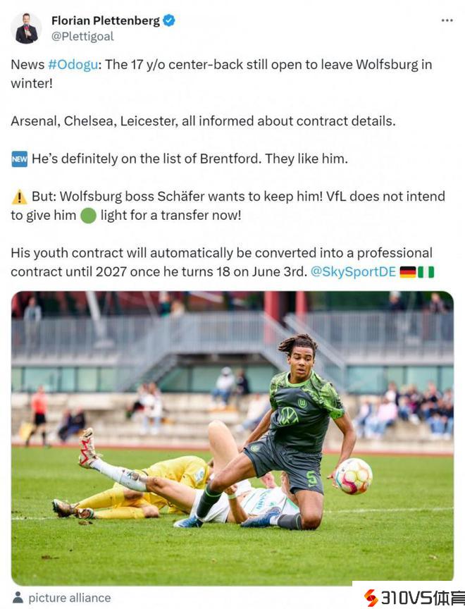 记者:切尔西、阿森纳等俱乐部有意狼堡17岁中卫奥多古