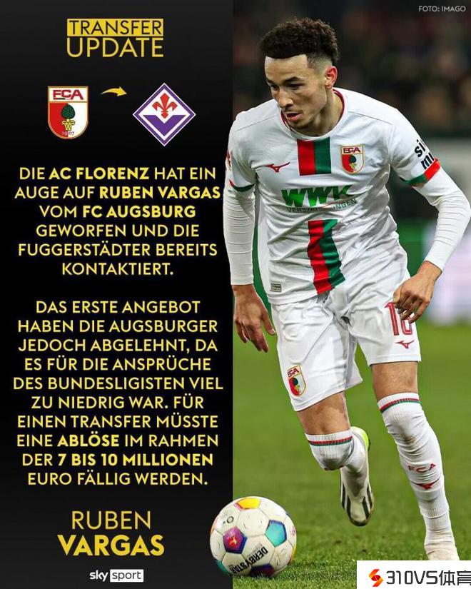 斯基拉:佛罗伦萨接近签下瑞士前锋巴尔加斯,球员年薪120万欧