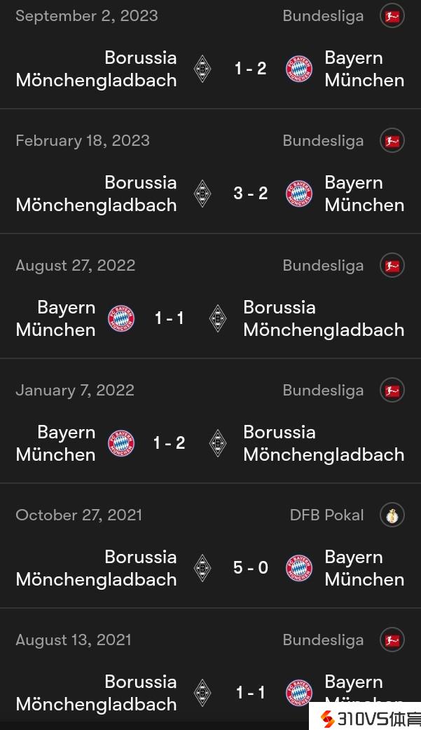 再遇苦主,拜仁过去6场对阵门兴只赢了1场