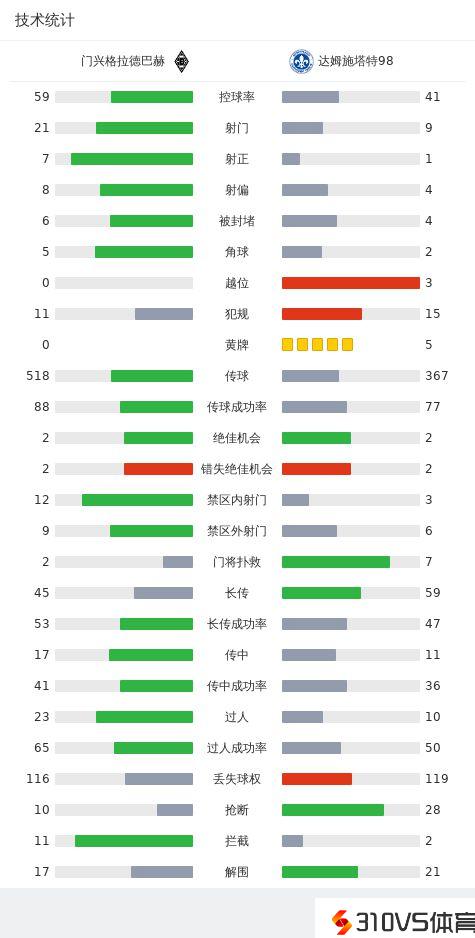 门兴格拉德巴赫0-0达姆施塔特98,双方破门乏术