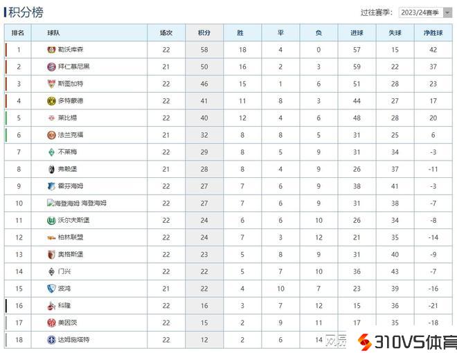 德甲最新积分榜:勒沃库森客胜8分领跑,多特蒙德战平仍居第4!