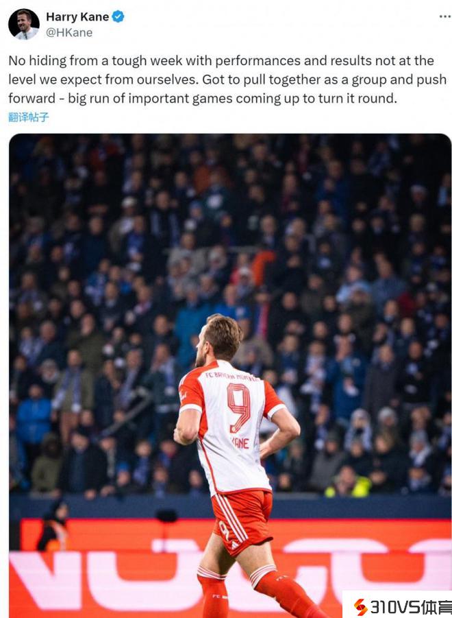 凯恩社媒:我们表现未到达希冀水平 要在接上去竞赛中改动局面