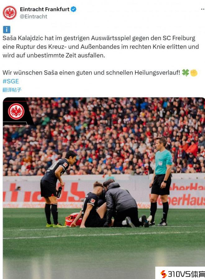 再次重伤!法兰克福官方:卡拉季奇十字韧带断裂,有限期休战