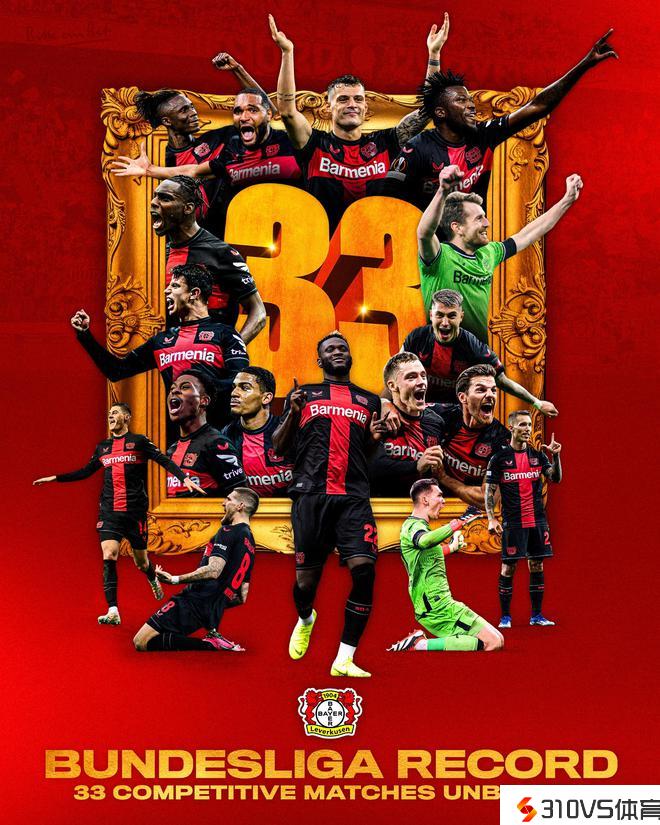 发明历史勒沃库森各赛事33场不败,打破拜仁纪录