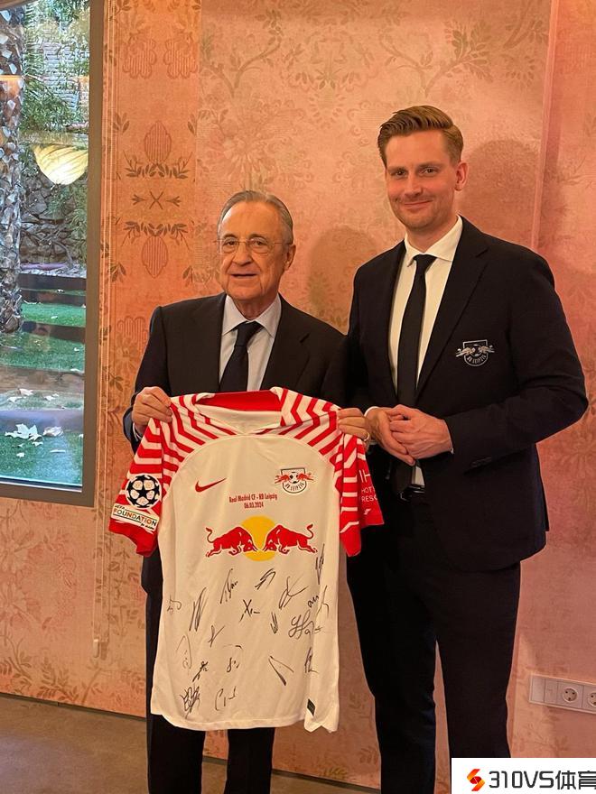 北京时间周四清晨,莱比锡前往客场应战皇马。在赛前,莱比锡总经理约翰-普伦格向皇马主席弗洛伦蒂诺赠送了莱比锡签名球衣。