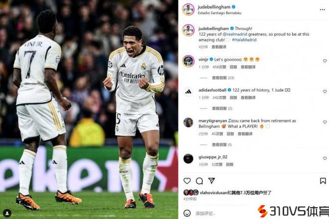 贝林厄姆社媒晒庆贺照:皇马阅历伟大的122年,自豪成为球队一员