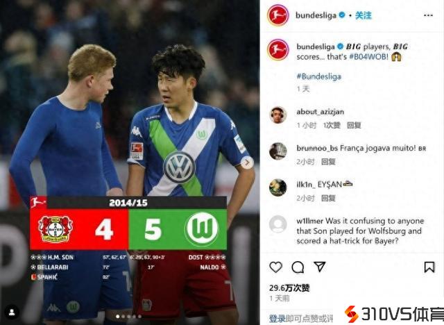 这组合不敢想德甲官方晒德布劳内和孙兴慜德甲时期同框照