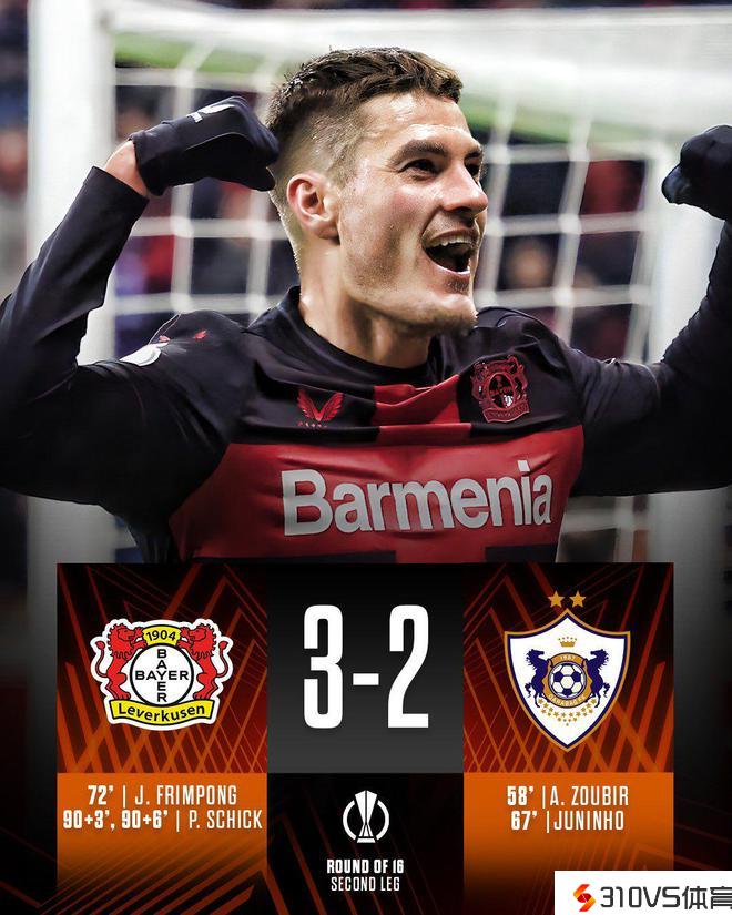 最终,37场不败的勒沃库森以5-2的总比分(首回合两队战成2-2)晋级欧联八强。这赛季,他们照旧是三线争冠,德甲、德国杯、欧联均有夺冠的能够。