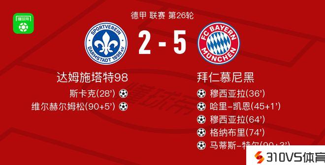 拜仁慕尼黑vs达姆施塔特98球员评分:穆西亚拉10分,舒恩5.8分