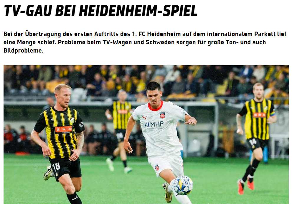 解说员布彻几次只能照读同事博伦巴赫发来的实时文字信息,而后者就在现场。海登海姆球迷也对瑞典方面转播商的业余感到不满,由于他们的失误导致球队历史性的欧战首秀与不完美划上了等号。