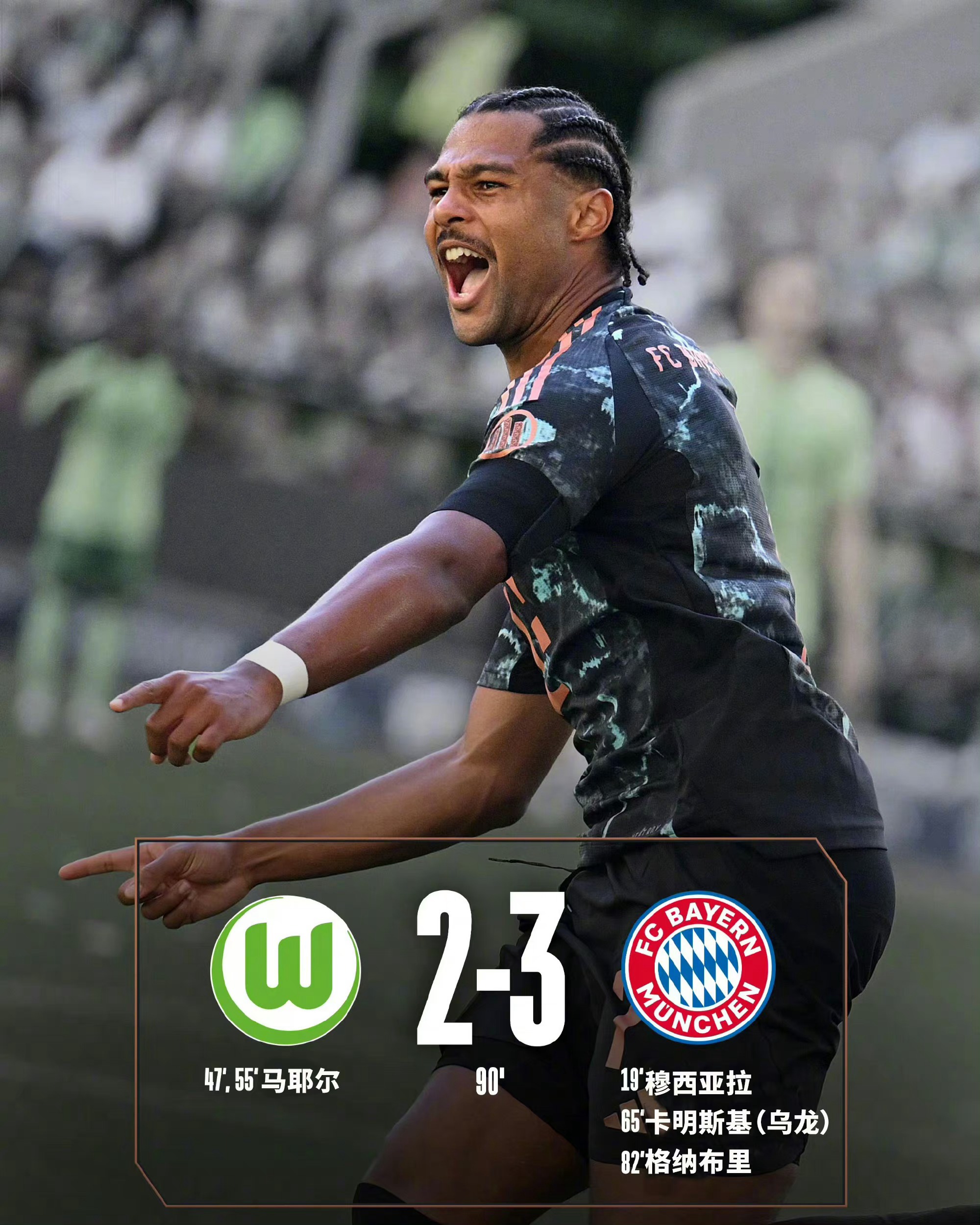 新赛季德甲首轮,拜仁3-2沃尔夫斯堡,收获德甲开门红。