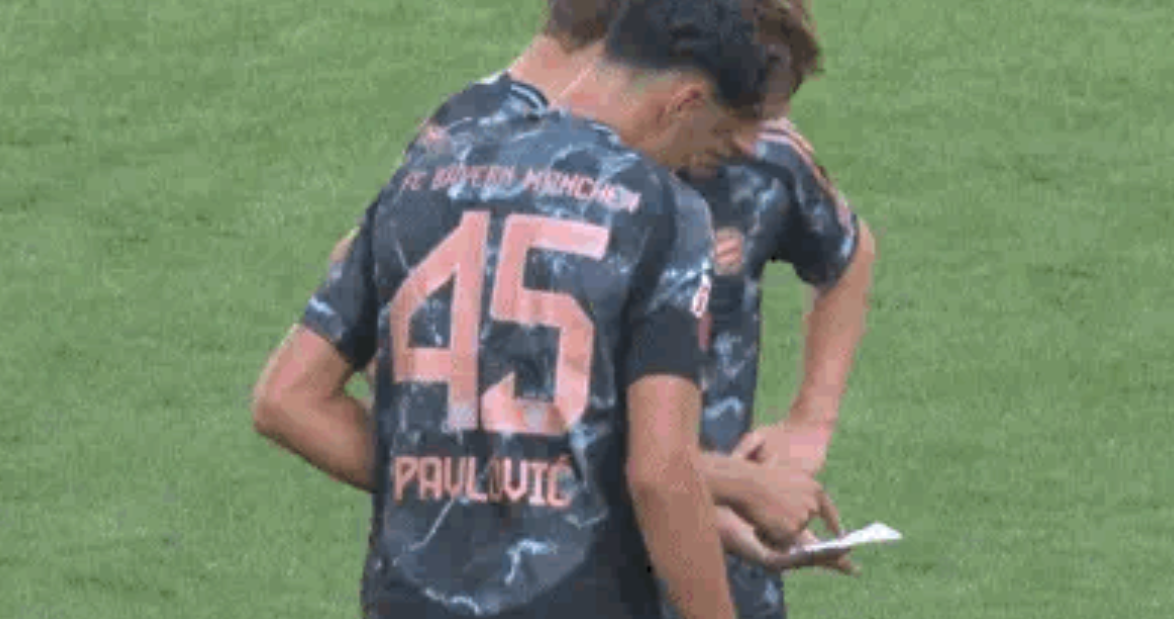 下半场比赛,穆勒替补出场并带上了孔帕尼的小纸条,对此基米希表示:“教练想要改变些东西,但你看到穆勒把他放在哪里了吗?我不想去碰他。